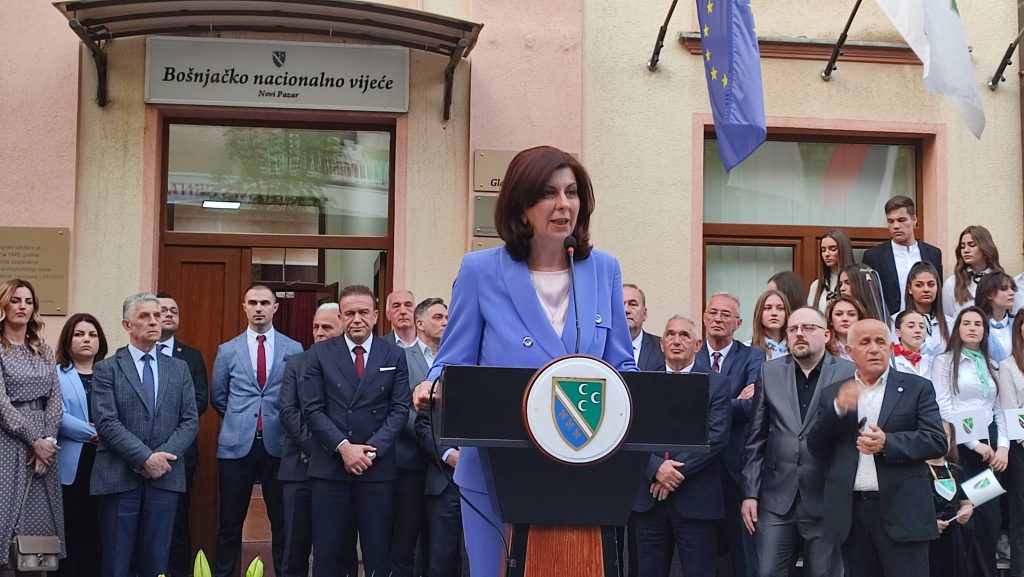 Curićeva je okupljenim građanima rekla da su u zastavu sandžačkih Bošnjaka utkana teška vremena.