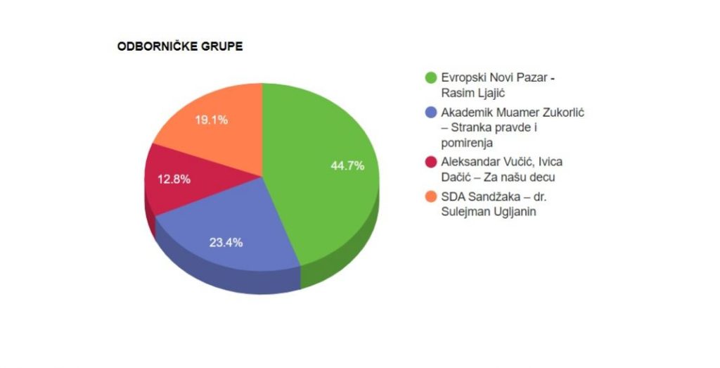 “Skupštna grada Novog Pazara broji 47 odbornika, sa četiri odbornička kluba. Shodno političkoj i nacionalnoj strukturi Skupštine grada Novog Pazara, sastav privremenog organa trebao bi imati sledeću političku i nacionalnu strukturu: Odbornički klub Evropski Novi Pazar – Rasim Ljajić dva člana privremenog organa, Akademik Muamer Zukorlić – Stranka pravde i pomirenja jednog člana, SDA Sandžaka – dr. Sulejman Ugljanin jednog člana, kao Aleksandar Vučić – Ivica Dačić – Za našu decu jednog člana privremenog organa”, naveo je Ugljanin.